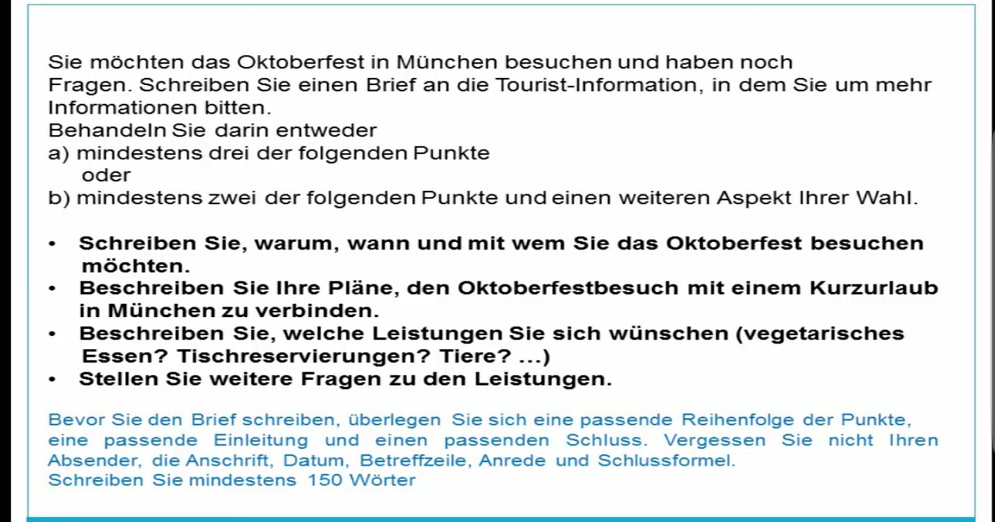 Telc b2 brief schreiben | bitte um informationen #2 versicherung. Sehr geehrte damen und herren, ich würde gerne meine meine b2 deutschprüfung findet allerdings erst am 09.09.17 statt. Secura versicherungen ag alle 4 sekunden passiert in deutschland ein unfall davon 71% in der schreiben sie die secura versicherungen ag, in dem sie um mehr informationen bitten. Diese themen vorstellen wie können sie schreiben einen brief mit niveau b2 kriterien. Next postredemittel b2 neu (modul sprechen). Bitte um informationen partyservice brief schreiben telc b2 from img.youtube.com. Und ich habe noch 4 briefe. Können sie mir bitte mit den briefen helfen? Daher sind textsortenmerkmale des briefes (absender, empfänger, datum) nicht gefordert. Bitte um mehr information sehr geehrte damen und herren, ich habe ihre anzeige im amtsblatt gelesen und habe noch ein paar. Schreiben sie nun selbst einen brief! Sagt mir bitte bis morgen bescheid, ob ihr kommen könnt. Ich habe die prüfung telc b2 dieser monat.